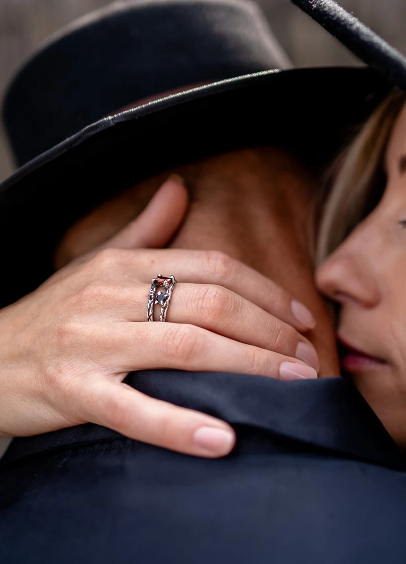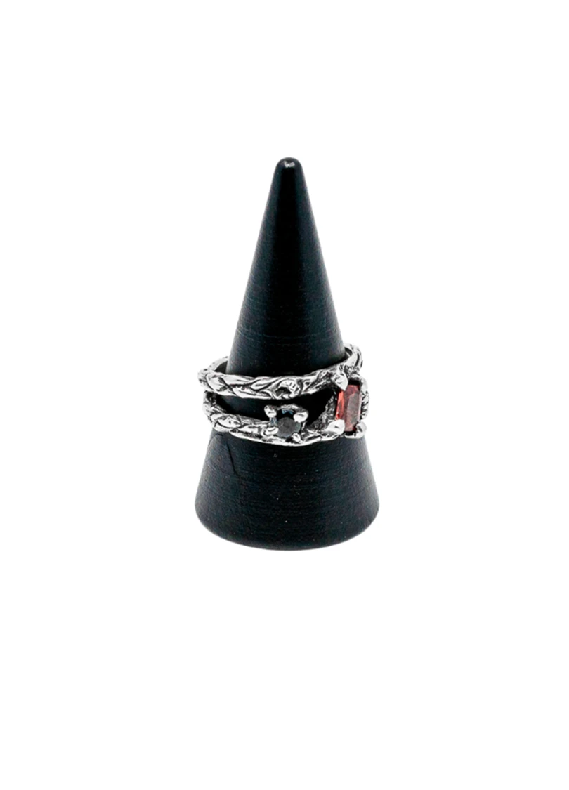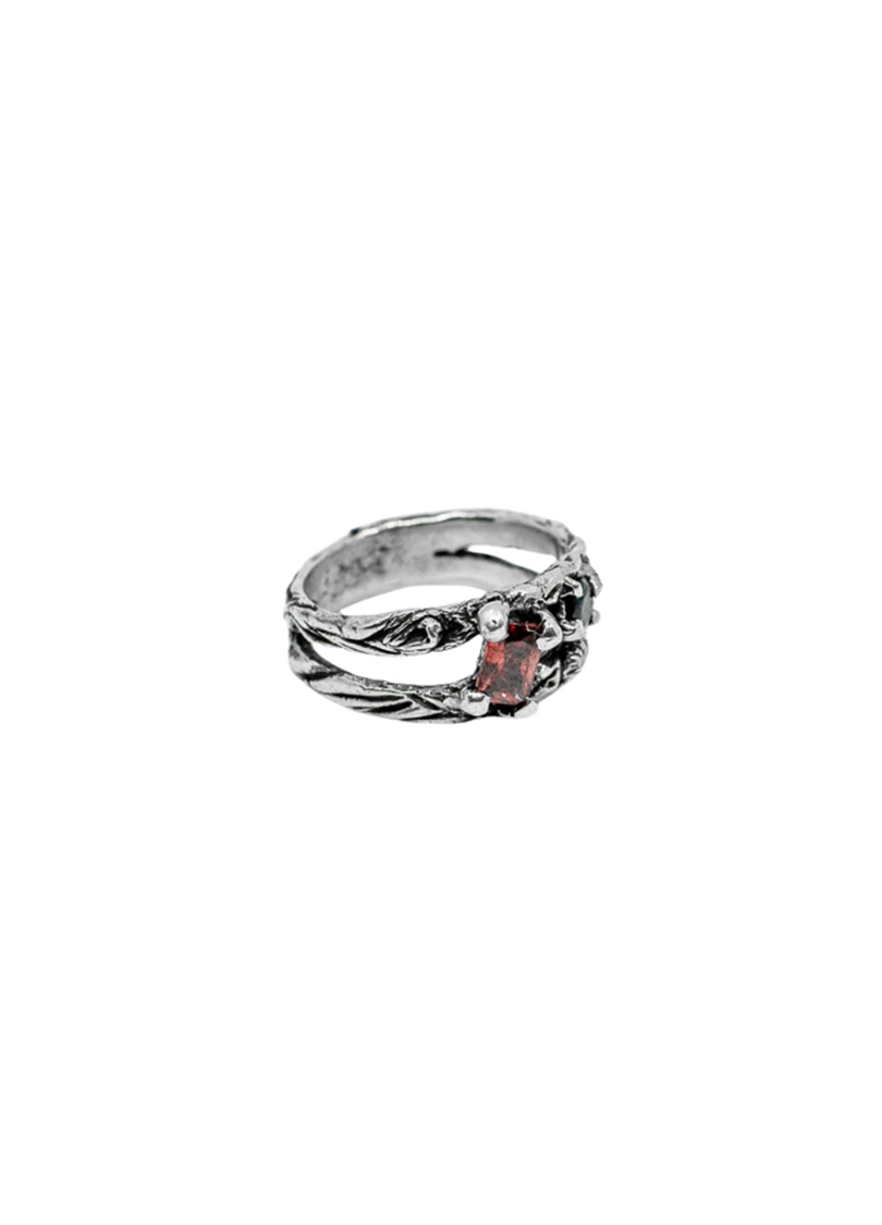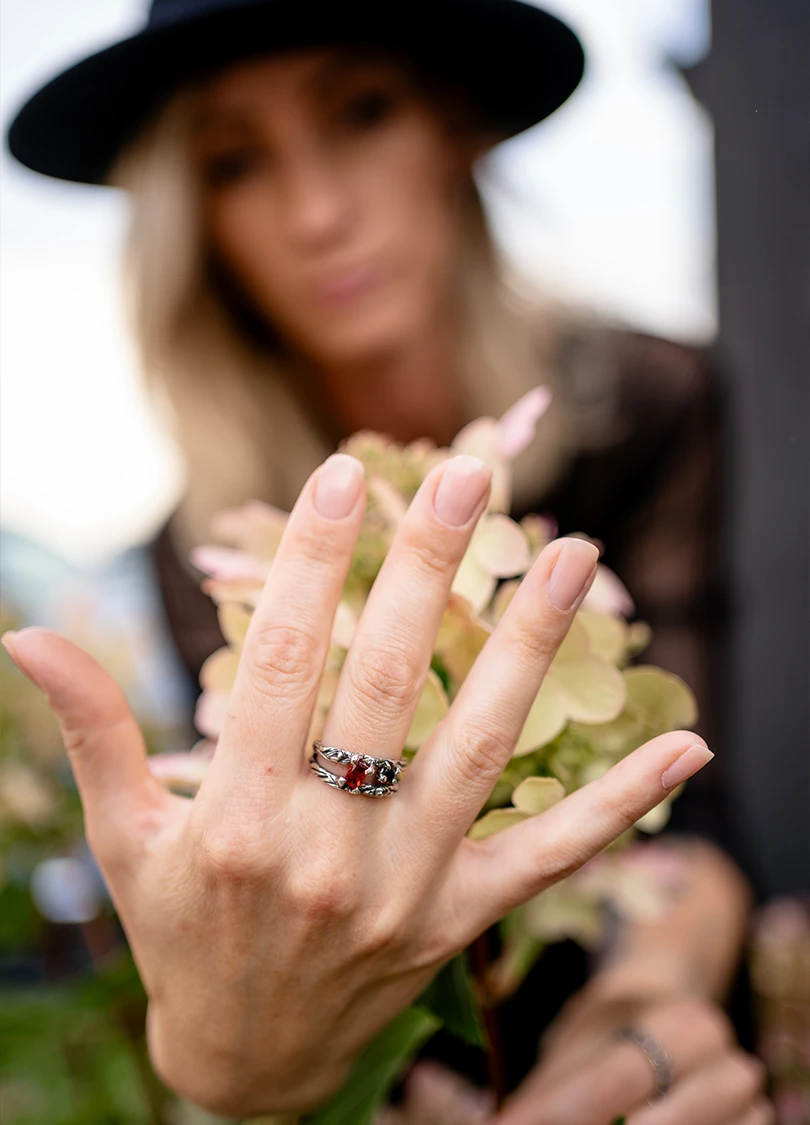 Silver 950 ring with red zirconia and onyx. Handcrafetd ring Inspired by the exuberance of the fauna and flora of the Brazilian Atlantic Forest.