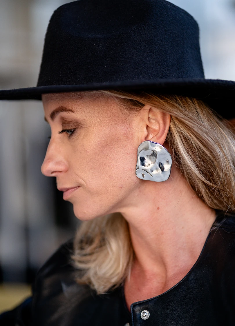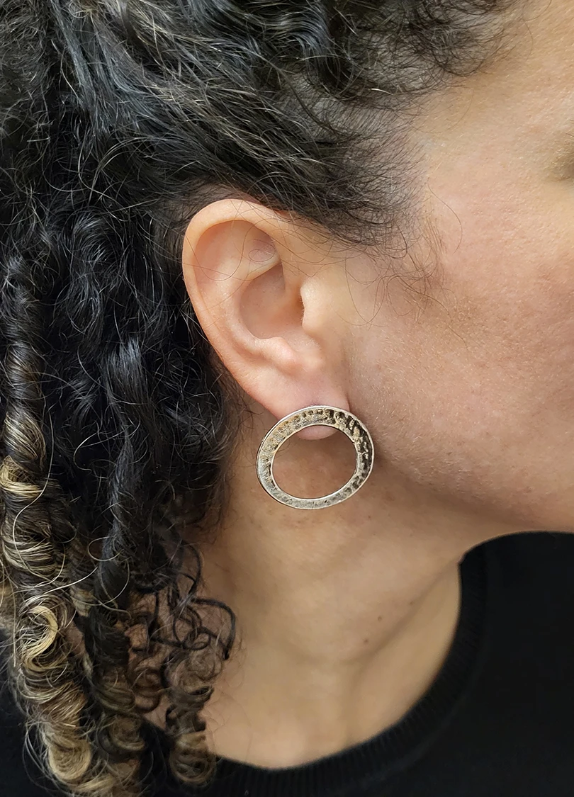 Silver plated closed hoops earrings with hammered texture to add a touch of personality.